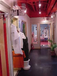 | 旅館時代の部屋をそのまま貸し、服やアクセサリー小物、アロマテラピーなど30軒ほどのテナントが、各々部屋を自由に改装して店舗にしている。店のオーナーたちは若く、ほとんどが自分でデザインした手作りの商品を置いている。各部屋の個性的な内装もみな手作りだ。 |